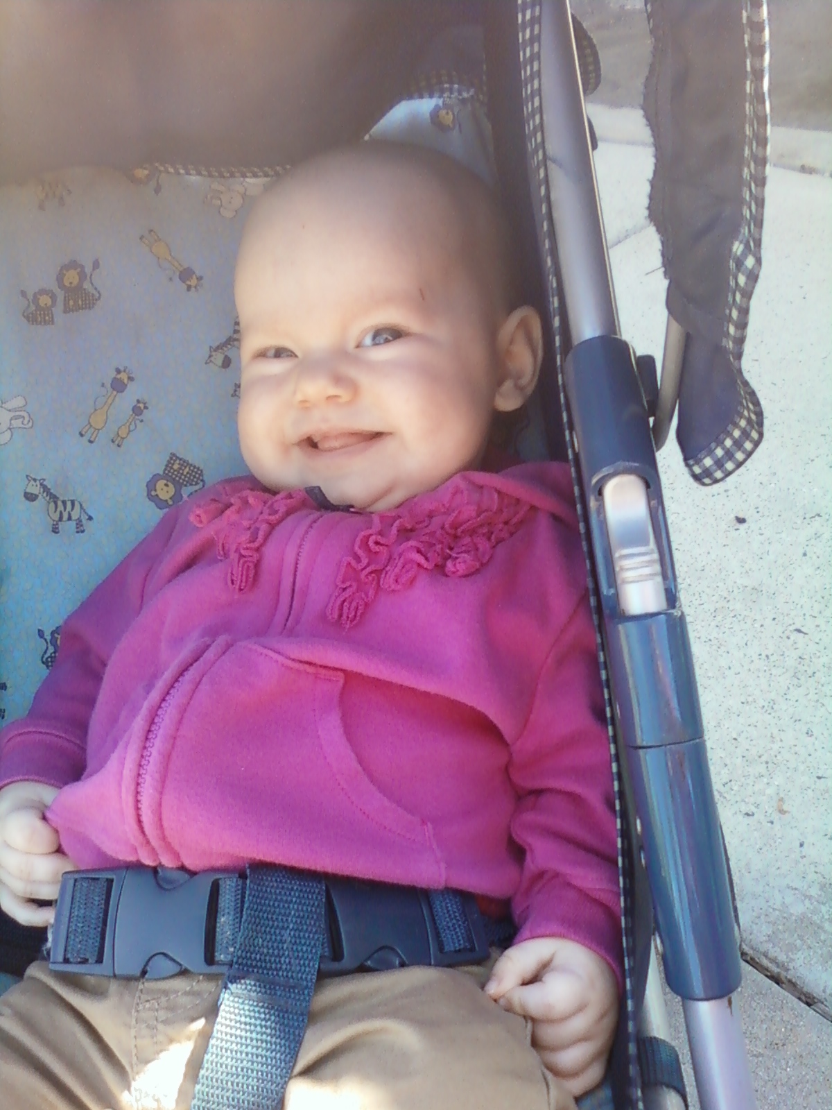 PS as of Monday she can roll onto her stomach. Not even 4 moths old yet, this girl has places to go.