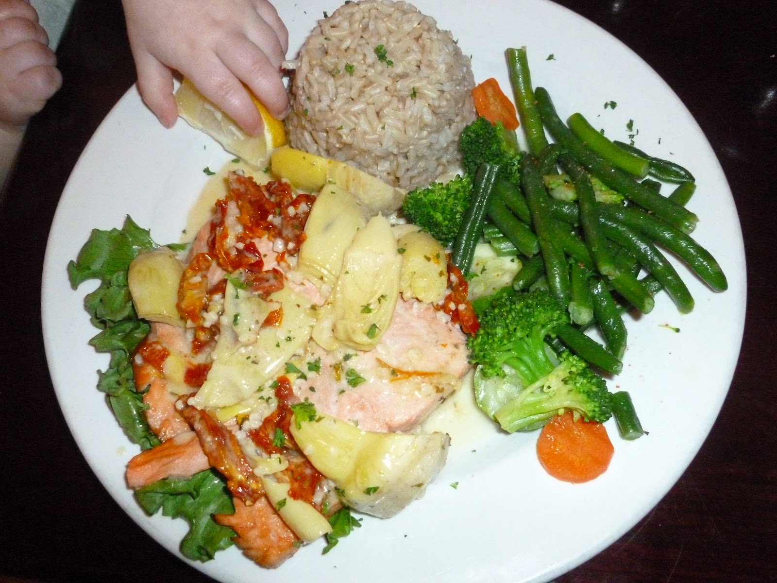 We met aunt Jessie and had some lunch. I had salmon, brown rice, and veggies while everyone else had burgers and grilled cheese (really?). Cassia did enjoy my lunch too, though, as you will see in the pictures. We did a little shopping and some saltwater taffy. We took the kiddies to a toy store and let Cassia pick any stuffed animal she wanted. She likes to hug them. Anyway, she locked eyes on a yellow and black snake and that was it. She carried her snake everywhere in the store and didn't even want to give it up to pay for it. Liam saw it and wanted one too, so he picked a green one (emerald tree boa). I asked Liam what the snake's names were and he said his was "Snakey" and her's was "Rose".